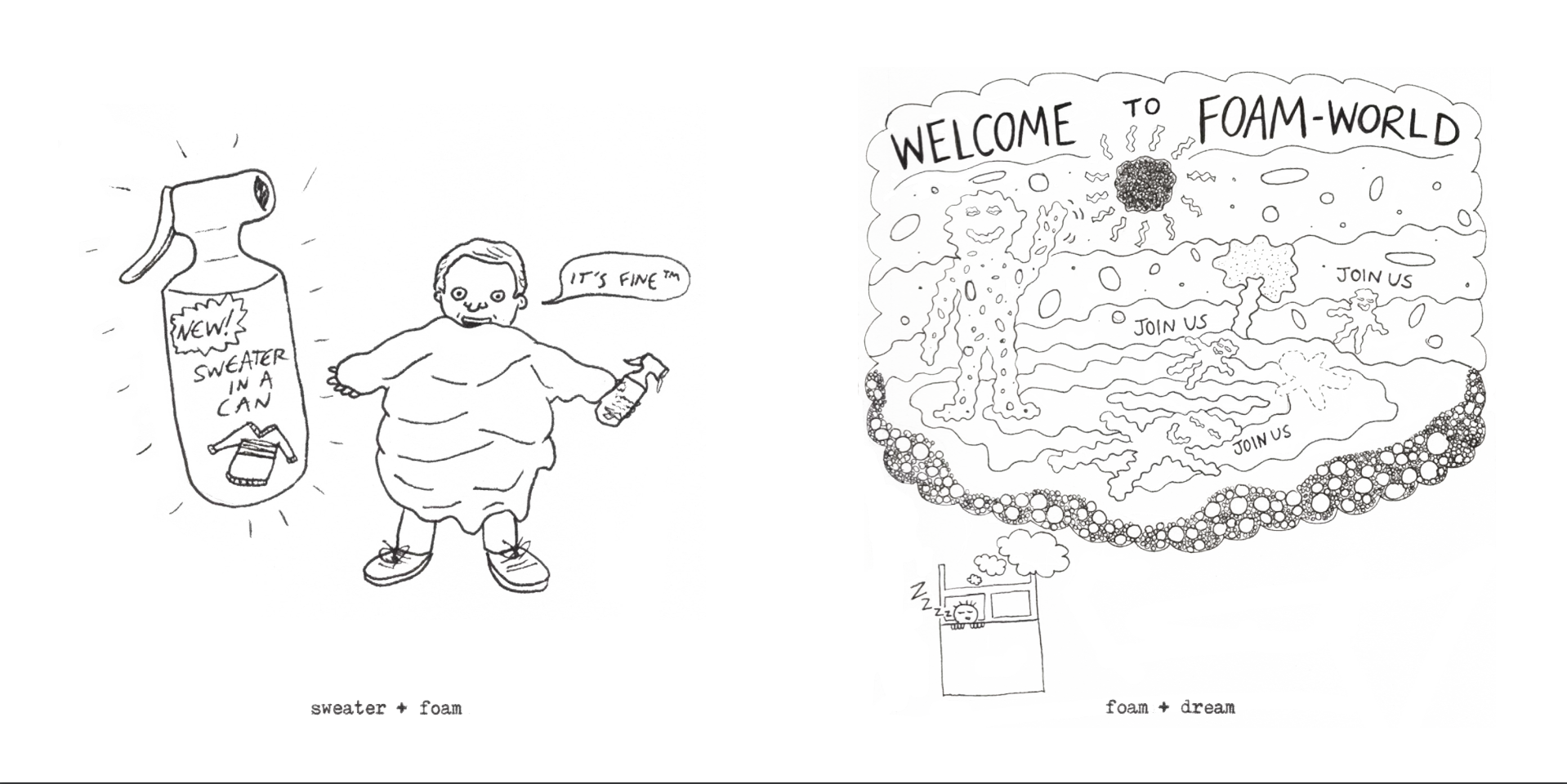 Myself and another illustrator/artist [Ryan Rich] came up with a “telephone”-style challenge where we gave each other a random new word each day, and combined it with the previous day’s word for some chaotic combinations. Each drawing in the zine is connected to the one before and after it for cohesion.