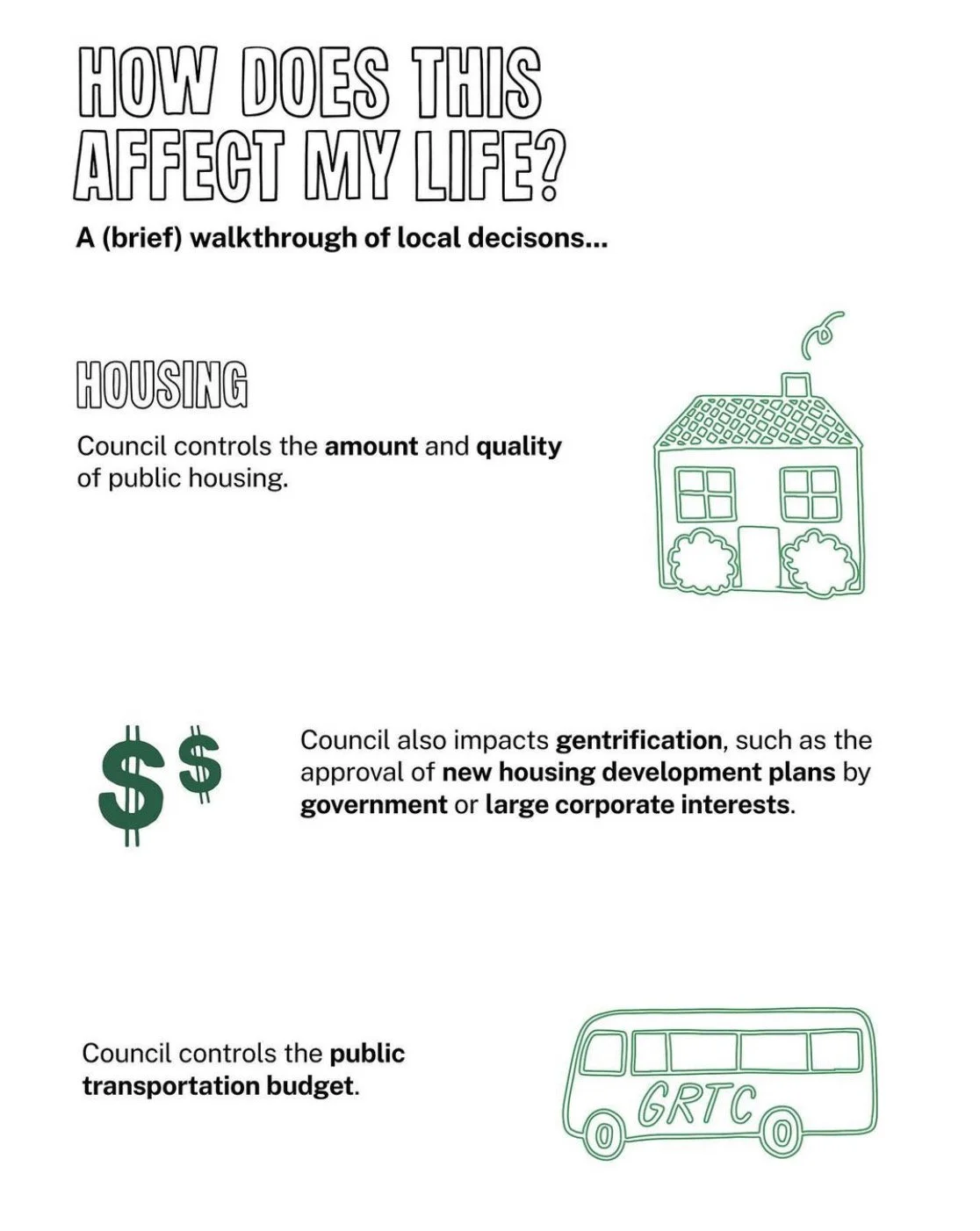 As a digital grassroots organizer at Virginia Student Power Network, I had the opportunity to design a collaborative zine about the local elections in Richmond, VA in 2020. The zine provides information about: municipal race candidates, when and where youth in Richmond can vote, and how these races affect community members lives- such as housing, education, and budget policies.